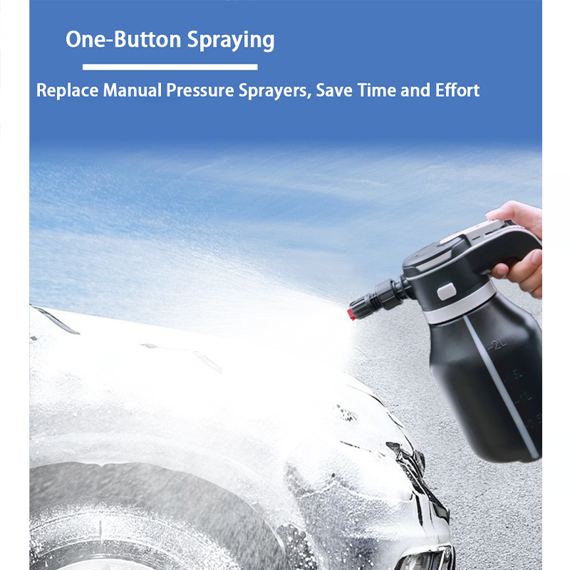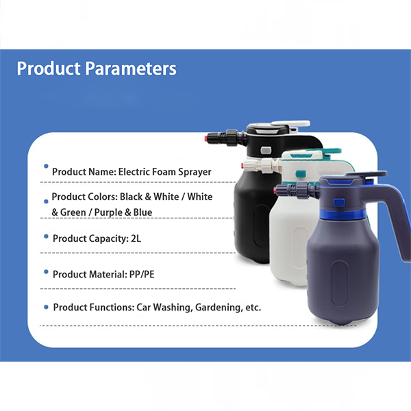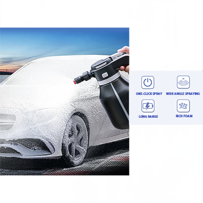Electric Foam Sprayer products themselves have many advantages. First, electric supercharging, one-click spraying. The electric supercharging system means that the spraying work can be achieved with a light press. Whether it is watering flowers and plants in gardening, producing clean foam in car cleaning, or disinfecting and cleaning in the home, electric supercharging can allow users to spray evenly with one click at work, making the spraying work time-saving and effort-saving, and improving work efficiency. Manual pressing requires repeated pressing, which is not only tiring, but also low in work efficiency. Second, the battery life is longer, and it can be used for about 30-45 minutes on a single charge. This endurance can be used without interruption during the work process, and can complete gardening, watering or car cleaning at one time, which is also helpful for improving efficiency. Third, the strong electric pressure of the product can fully emulsify the detergent or disinfectant, and the foam produced is more dense. In car beauty cleaning, the dense foam can go deeper into the cracks of the car paint, making the dirt disintegrate more easily. In the horticultural irrigation work, if the nutrient solution is foamy, it can be easier to contact the plants. At the same time, it is sprayed at a wide angle to make it fully contact the plants. Finally, when disinfecting and cleaning the home, the more delicate foam means that the contact area can be expanded, making the disinfection and cleaning work more thorough. Compared with the traditional hand-pressed sprayer, the insufficient manual pressure causes the foam to be sparse and uneven, which greatly affects the cleaning and disinfection effect. Fourth, thicken the bottle body and upgrade the material, so that users can use it more at ease. The product itself is made of PP/PE material to make a thickened bottle body. The thickening of the bottle body makes Electric Foam Sprayer more durable and not prone to damage. Finally, the design details of the functional parts of the product are more professional and humanized. For example, the Type-C charging port can be compatible with mainstream charging devices, making charging more convenient. The pressure relief valve can ensure the safety of use, and the foam nozzle can accurately control the spraying range, which can easily complete wide-angle spraying and fixed-point spraying.