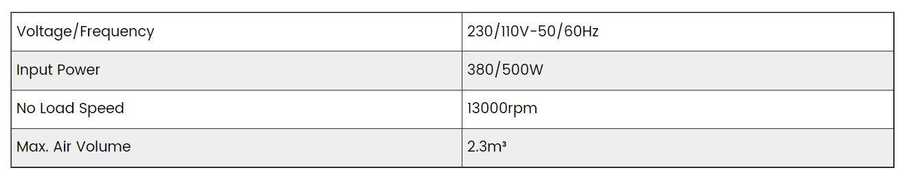 Genuinsky's Portable Blower BL001 has a dual input power of 380/500W to choose from, as well as a no-load speed of 13000rpm and a maximum air volume of 2.3m³, so it can be a cleaning helper in many fields. A good assistant for flow management. Next, I will explain the advantages of the product according to the specific product characteristics. First, flexible adaptation of wide voltage and dual frequency. The adaptive specification of 230/110V-50/60Hz voltage and frequency can be adapted to operation, whether in the domestic standard industrial working environment or in the overseas 110V working scenario. At the same time, it can be flexibly switched with 380/500W dual input power according to different usage scenarios. , meet different usage needs. For example, the input power of 380W can meet the needs of daily home furnishings and some light industries, and the input power of 500W can meet the needs of relatively heavy cleaning and the needs of large-flow airflow operations. Second, the strong output of large air volume and high-altitude load speed. The 13000rpm no-load speed can produce strong airflow power. At the same time, the product itself also has a maximum air volume of 2.3m³, and the combination of the two can quickly clean up pollutants such as dust and debris. For example, it can be used to clean up sand and garbage on the ground in the scene of a construction site. In addition, it can also be used to clean up dust, debris and other debris on the equipment in the workshop. The strong power makes the cleaning efficiency very high. Third, it is lightweight, portable and easy to use. The product itself has a lightweight body and compact structure, which can be held and operated with one hand. It is very light. Users can easily hold the mobile work without any burden. It can be used flexibly in high-altitude occasions and narrow spaces, and there are no restrictions on the use of space. Fourth, the scene is widely practical. It can be applied in many fields. For example, Portable Blower BL001 can clean metal debris and dust in the gaps of the equipment in industrial scenarios. Regular cleaning can make the equipment run more safely and efficiently. In the field of construction sites, it can help clean up debris such as residue and garbage on the site, making the construction site safer. In daily home scenes, Portable Blower BL001 can clean up dust and fallen leaves in the courtyard. The lightweight characteristics of the product can also make it more convenient for home use.