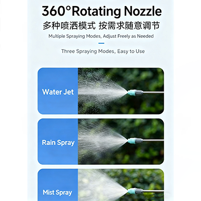 Secondly, from the design of the product, first, the design of the 360° rotating nozzle. The 360° rotating nozzle supports three spraying modes. The first is the water column mode. In this mode, the water flow is more concentrated and has a strong impact. It is more effective for cleaning stubborn oil stains on the surface of kitchen stoves and range hoods, and can also effectively remove dust and dirt in narrow gaps. The second is the rain mode. In this mode, the water flow will disperse to form a soft fan shape, which has a covering effect similar to drizzle. In general, spraying water to plants in gardening and cleaning the surface of furniture in daily home furnishings can effectively avoid local water accumulation. The third is the spray mode. The liquid sprayed by this mode is delicate and misty. The misty liquid can be sprayed more uniformly and gently, such as home disinfection and more sophisticated plant maintenance. During use, you only need to rotate the nozzle to switch, which can be freely adjusted according to different usage scenarios, which is very convenient. Second, with the help of the extended rod, with the extended rod, the spray distance can reach 5 meters, which makes this 3L Pressure Sprayer more widely used, such as high-rise windows or relatively high-rise furniture tops and other hard-to-reach places can be easily cleaned, and the super-large pressure makes the spray The shooting effect is better, and the cleaning work at high places can be completed without the help of ladders, which not only ensures safety, but also makes cleaning more convenient. Third, visualization of the measurement scale. The design of the liquid port with a scale on the side can control the amount more accurately when adding liquid, so that the ratio can be more accurate when configuring specific nutrient solution or disinfectant, and it can also be more comfortable to use.